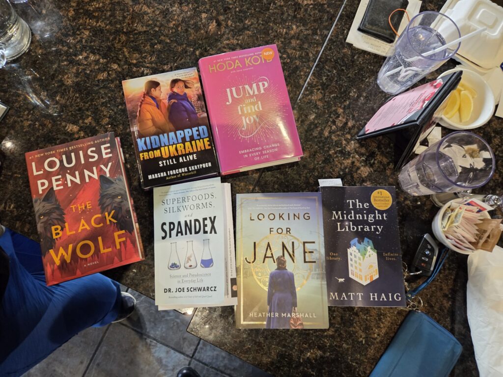 So nice to chat about a whole pile of books while eating good food and socializing with friends!